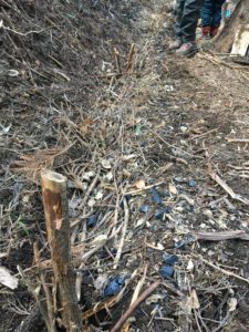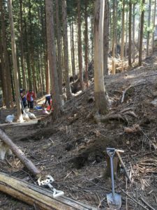 朝から日没まで、「一般社団法人 大地の再生 結の杜づくり」の方による座学と山中での現場作業に勤しみました。