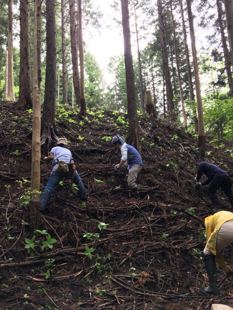 斜面の土留め作りも斜面上の方まで完了することができ、人が集まって作業をしたときの凄さを改めて実感。