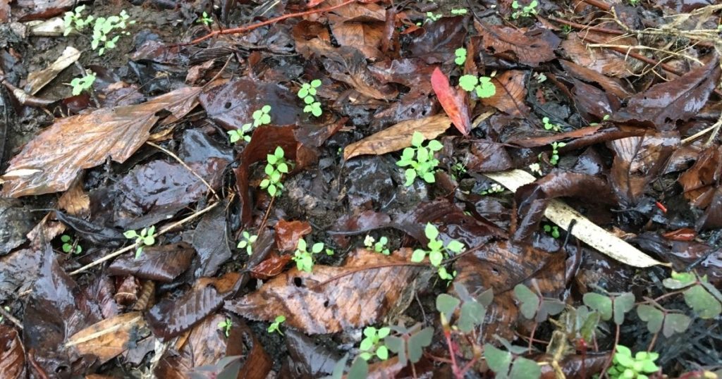 9月末に防草シートを取り除いて、点穴掘りと落ち葉のグランドカバーをしてから数週間。
