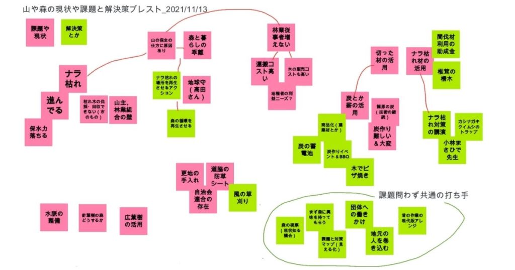 この中で出てきた課題・問題としてキックオフ中に割合多く時間を占めたのが『ナラ枯れ』問題。