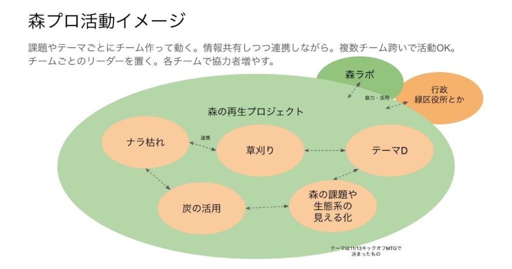 11/13(土)の夜、森の再生プロジェクトメンバーの顔合わせ&キックオフをzoomで行いました。