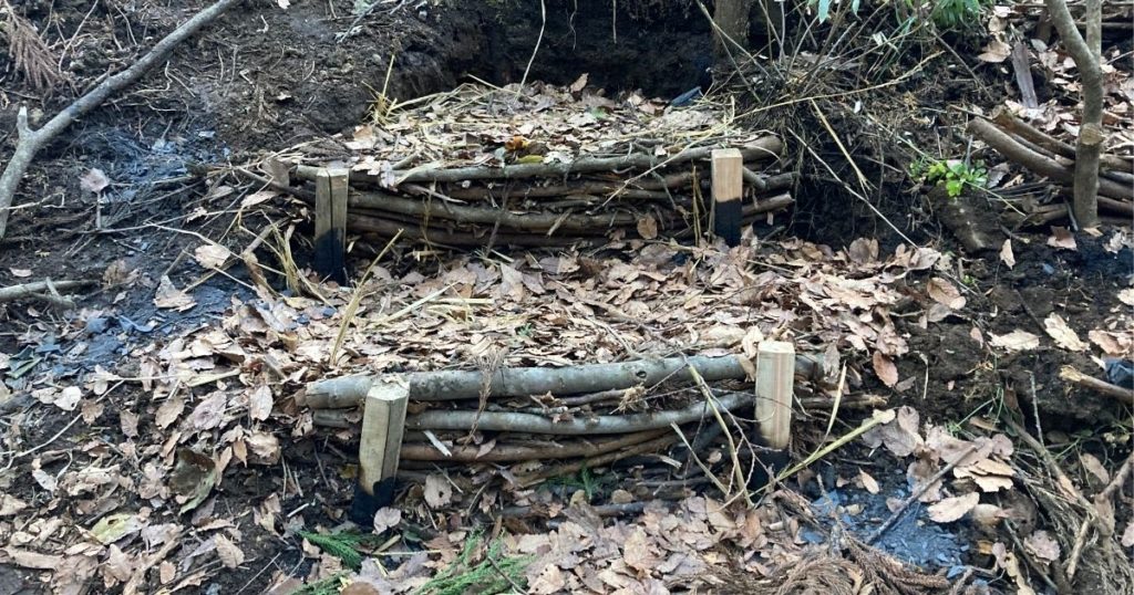小枝や落ち葉を隙間に詰め込みながら、人が踏んでも壊れないようにガッチリと組む。ひたすら集中して作り込んで、出来上がりのスッキリ感はなんとも言えない達成感に覆われます。