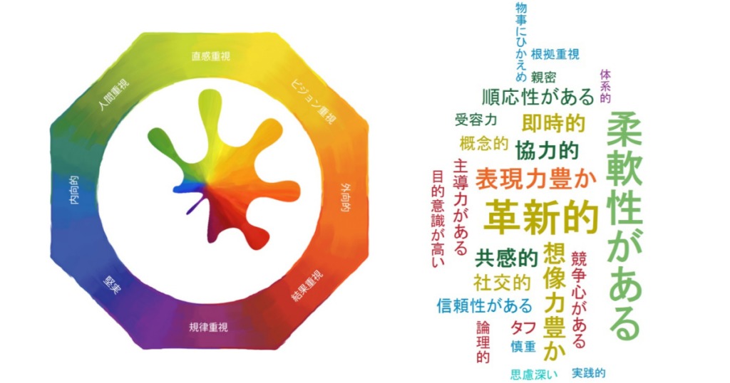 カラフルなイメージで自分の行動特性を認識でき、他人と協調した働き方について多くの気付きを得ることができます。